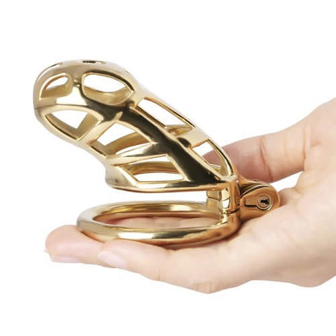 This cage is Gold Plated by Vacuum metalizing. Vacuum metalizing involves heating the coating metal to its boiling point in a vacuum chamber, then letting condensation deposit the metal on the substrate's surface. It is a nonpollution and Body Safe technique for Steel coating.